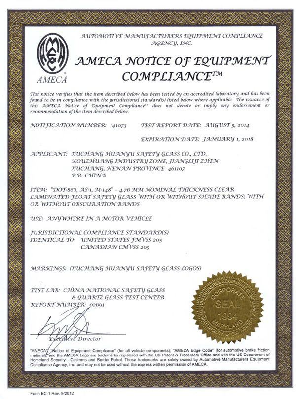 • Xuchang Huanyu Safety Glass Co., Ltd. ,formally founded on Oct 1st, 2004