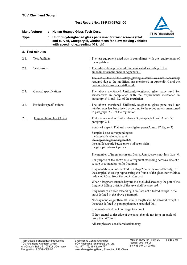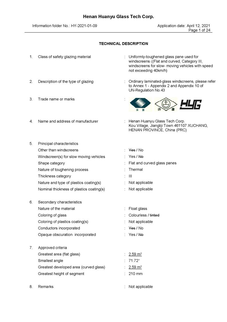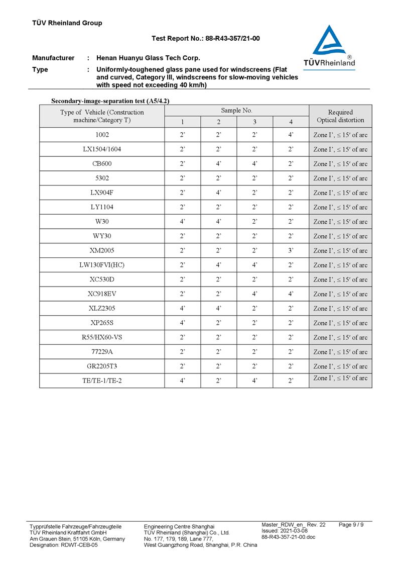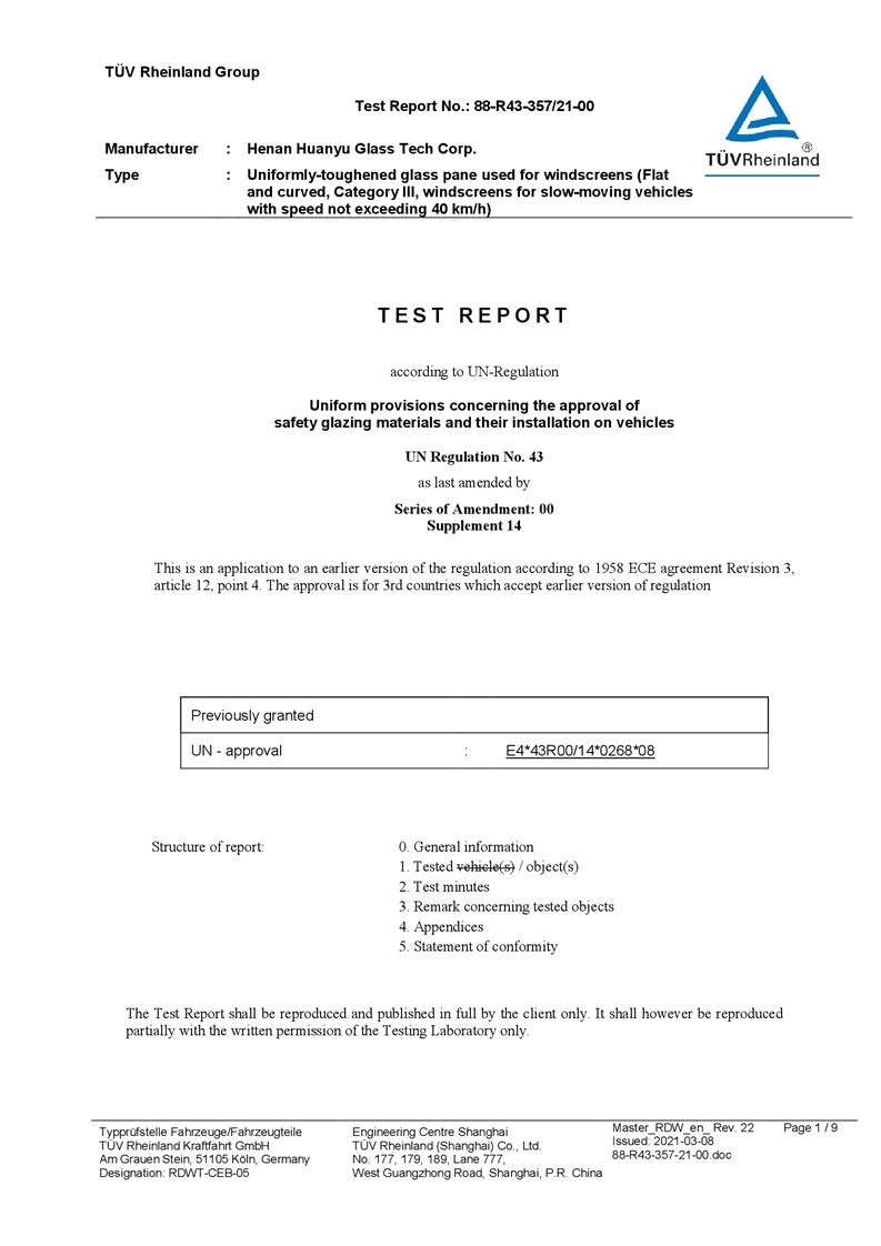 河南環(huán)宇玻璃科技股份有限公司年產(chǎn) 5 萬平方米驗收報告公示